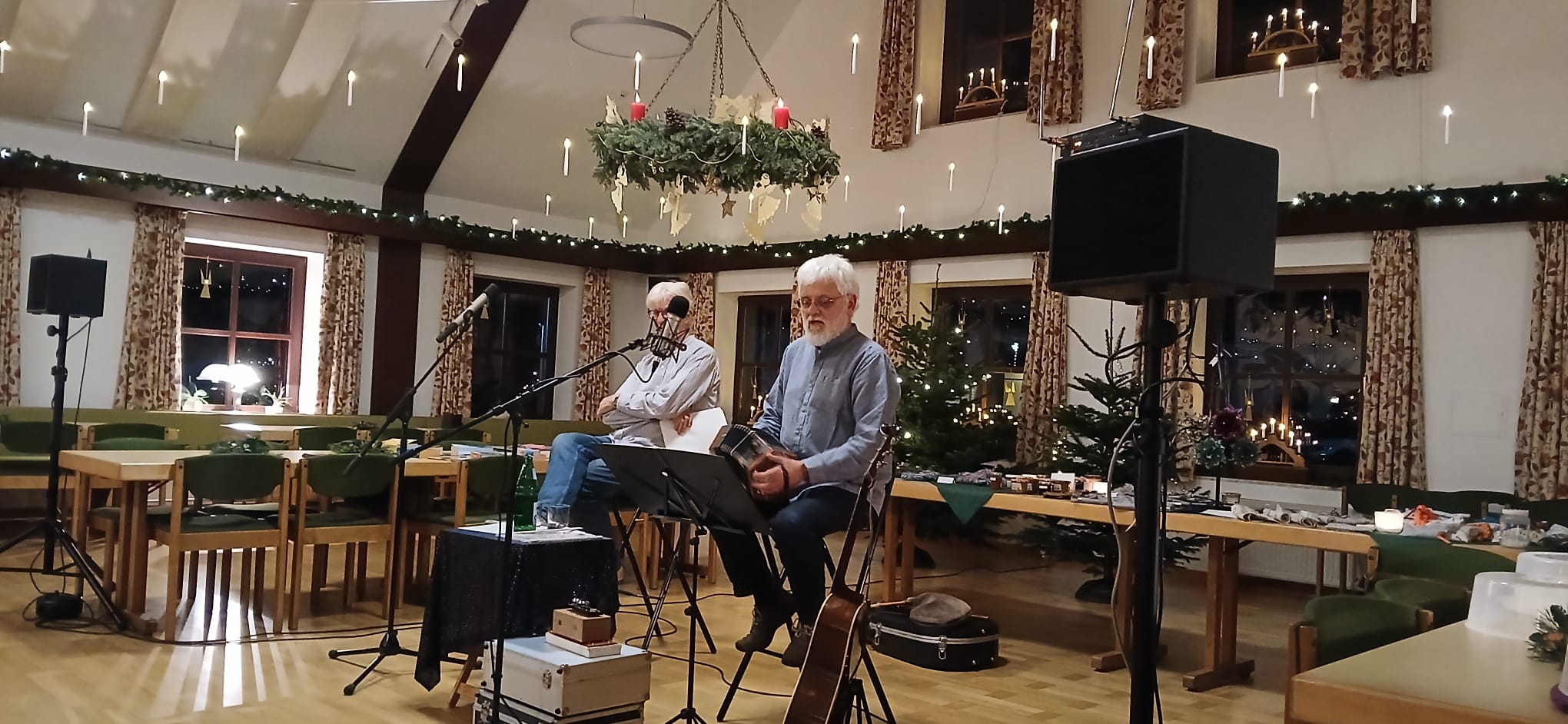 Danach unterhielten uns Karl-Heinz Langer und Rainer Schwarz mit ihrem musikalisch-literarischem Programm "Wedder mol Wiehnachten" in hoch- und plattdeutscher Sprache. Die traditionellen Lieder wurden voller Begeisterung mitgesungen. Es war die perfekte Einstimmung auf Weihnachten.